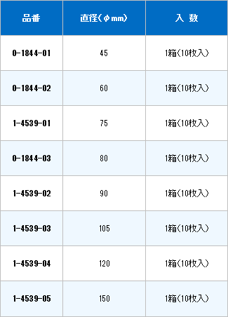 仕 様 ●材質:ソーダ石灰ガラス ●厚さ:2mm ●入り数:10枚 シリーズ一覧(直径) ●φ45mm ●φ60mm ●φ75mm ●φ80mm ●φ90mm ●φ105mm ●φ120mm ●φ150mm